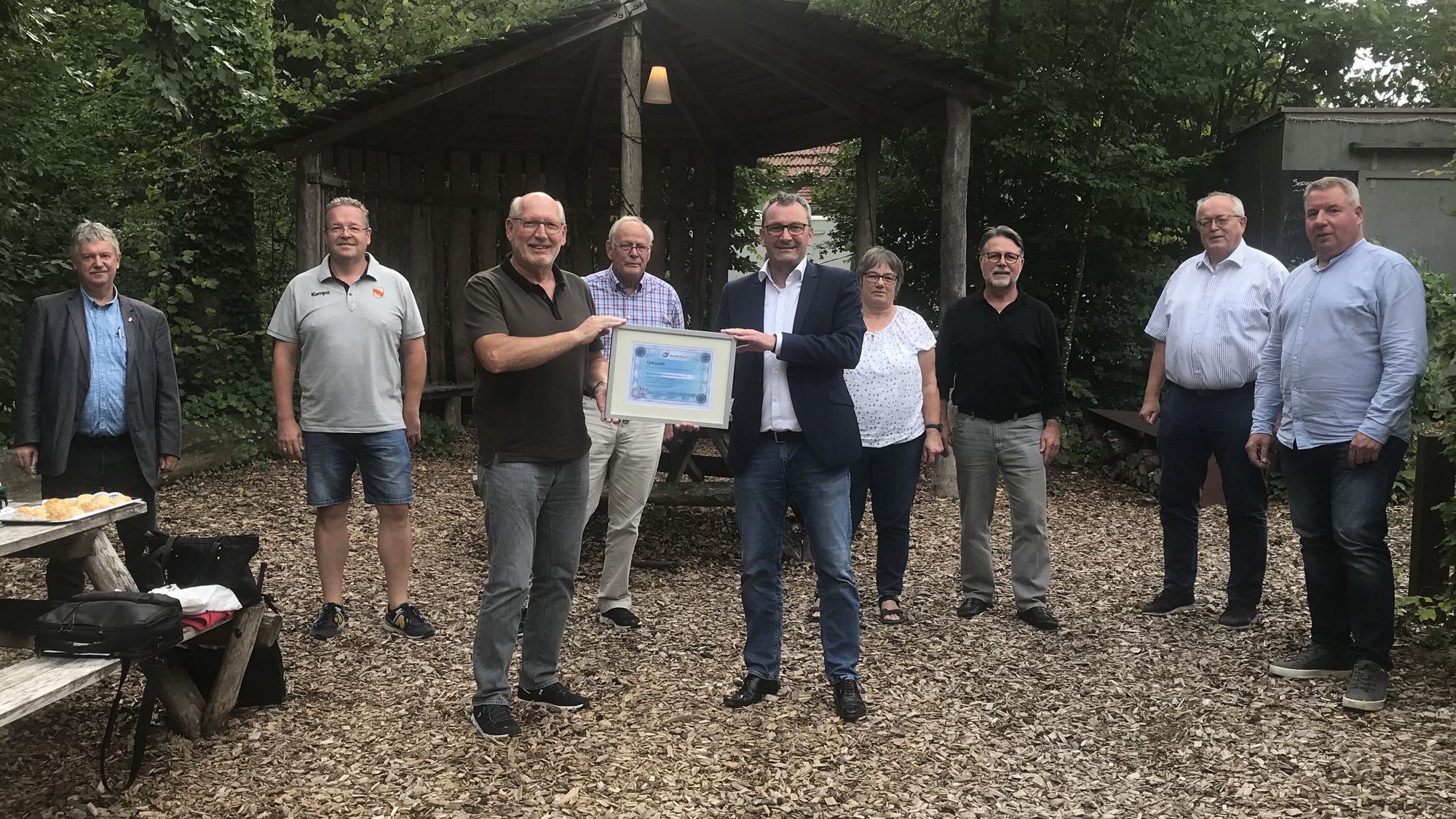 Dabei nutzt er die Gelegenheit dem Präsidenten des Hamburger Handballverband e. V. die druckfrische Aktie zu überreichen. Damit ist auch der letzte Schritt der Aktienübertragung abgeschlossen.